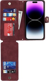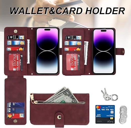 Cavor iPhone15 Pro 手帳型ケースiPhone15 Proスマホケース肩掛け 首かけ 斜めがけショルダーケース【肩掛け&手掛け】ストラップ 2本付き いPhone15 Proケース カード収納CASE iPhone15 Proショルダー ケースiPhone15 Pro財布型携帯カバーQi急速充電対応 スナップ式横置 可愛【ワインレッド】