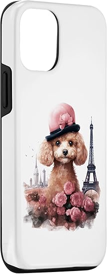 iPhone 15 Pro かわいいフレンチパリエッフェル塔トイプードル パリジャンプードル スマホケース