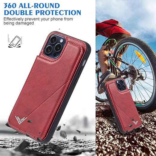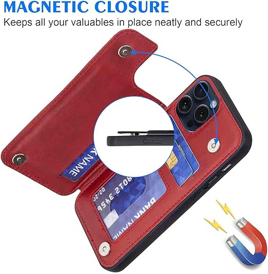【Geshh】iPhone 16 PRO 6.1 inch(6.1インチ)レザーケース(レッド) 耐衝撃 財布型カバー カード収納 横置きスタンド機能 内蔵マグネット 開閉式 ストラップ付き 対応アップル アイフォン16プロ iphone16pro RED1