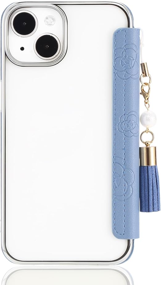 手帳型ケース iphone16plus おしゃれ マグネットなし 押し型の花柄 メッキ加工 6.7インチ iphone 16plus 手帳カバー クリア アメリカ 真珠タッセル付き アイフォン16プラス カバーケース 軽量 質感良い 手触りよい アイフォン16プラス 財布型カバー シンプル 耐衝撃ケース アイフォン16プラス 携帯ケース 多機能 スモークブルー1