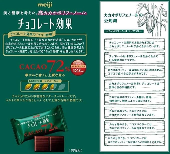 カカオポリフェノール1枚当たり127mg、1箱当たり35814mg!