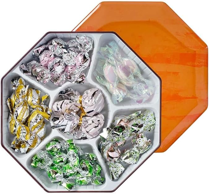 6種類のチョコレートの詰め合わせ:マカデミアンナッツチョコレート、ココアミルクチョコレート、抹茶ボールチョコレート、ココアコートアーモンド、オーロラアーモンド、リーフメモリー