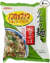 原材料:油揚げめん(小麦粉、そば粉、パーム油、馬鈴薯でん粉、食塩)、砂糖、食塩、魚醤粉末、酵母エキス、山菜ミックス(ワラビ、ゼンマイ、タケノコ、キクラゲ)、乳糖、ねぎ、混合節粉末(カツオ節、サバ節)、麦芽エキス、ごま油