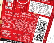 原材料:油揚げめん(小麦粉(国内製造)、植物油脂、食塩、乾燥酵母、植物性たん白)、添付調味料(しょうゆ、乳糖、魚介エキス、たん白加水分解物、食塩、こんぶエキス、発酵調味料、香辛料、植物油)、かやく(味付油揚げ、卵、かまぼこ、ねぎ)/加工でん粉、調味料(アミノ酸等)、リン酸塩(Na)、炭酸カルシウム、レシチン、カラメル色素、増粘多糖類、酸化防止剤(ビタミンE)、香料、ポリグルタミン酸、ベニコウジ色素、ビタミンB2、ビタミンB1、カロチン色素、(一部に小麦・卵・乳成分・さば・大豆・ゼラチンを含む)