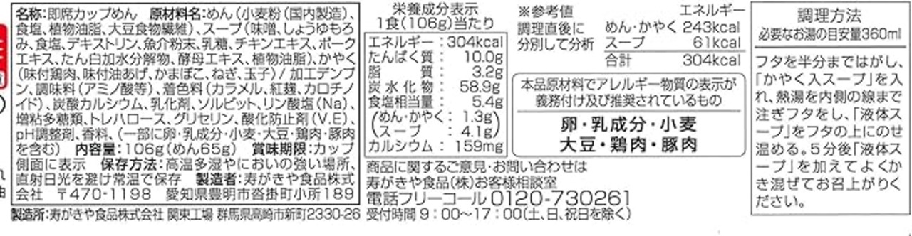 寿がきや カップみそ煮込うどん 106g×12個1
