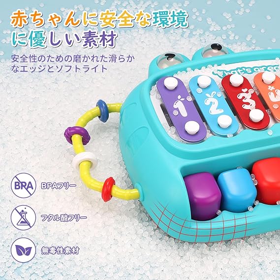 【多機能キッズピアノおもちゃ】赤ちゃんのおもちゃには、学習モード、音楽モード、娯楽モードの3つのモードがある。 学習モード:合金ピアノ鍵盤と音楽スティック、美しいサウンド、簡単な数字を学ぶことができます。音楽モード:ピアノ鍵盤、赤ちゃんがピアノを弾くことができ、美しい曲を自由に作成することができます。娯楽モード: ビーズを巻くピアノのおもちゃは赤ん坊の注意を引き付けることができます。