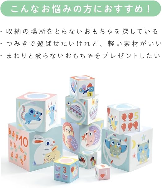 DJECO ジェコ 10ベビー ブロックス つみき 1歳 かわいい ブロック スタッキングトイ キューブ おもちゃ 赤ちゃん 入れ子 (DJ06103)1