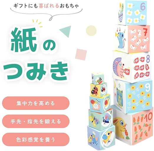 【フランスDJECOの知育】【1歳からのつみき】【スタッキングキューブ】1歳からの知育におすすめ!積み上げたり、重ねたりして遊ぶスタッキングブロックです。タワーのように積み上げることもでき、また入れ子のように順番に重ねて入れることもできるので子どもは夢中になって遊びます。一番大きいブロックは一辺約14㎝。1歳の赤ちゃんにとっては大きいブロックなので、ダイナミックな遊びができます!