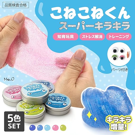Ms.0 「公式」2023 こねこねくん スーパーキラキラ 不 知育玩具 思議な感触 伸び〜る おもちゃ トレーニング 安全検査合格済 PL保険加入会社 (5色セット)1