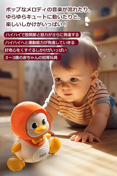 0〜3歳の子供に最適している動くおもちゃ:乳幼児期における重要な発達段階であり、このアヒル動くおもちゃは赤ちゃんの筋肉や骨の正常な発達を促すとともに、脳の発達に刺激できます