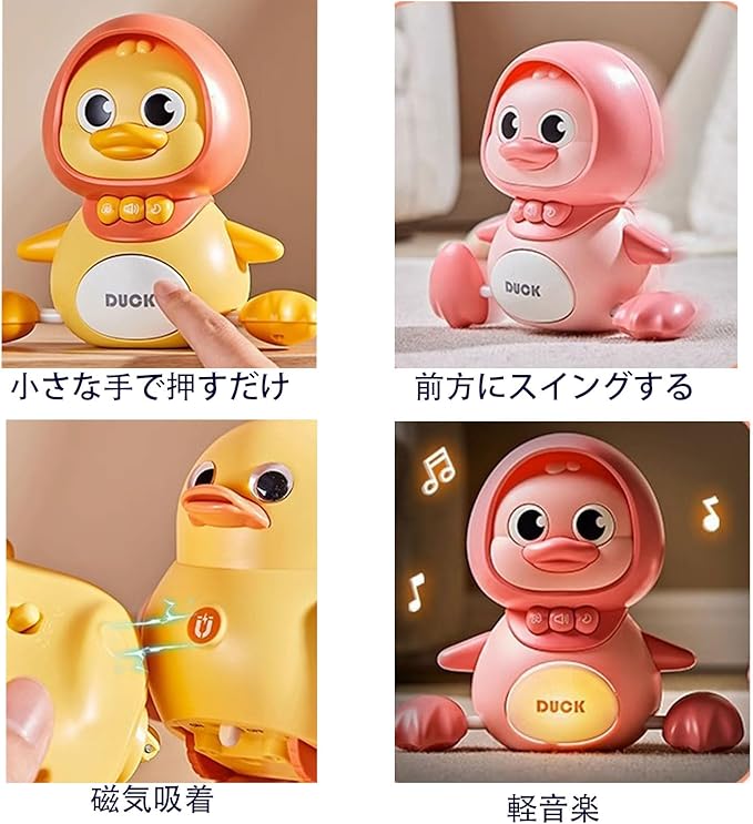【YueType】赤ちゃん おもちゃ 0歳 アヒル親子 知育玩具 1歳 誕生日プレゼント 男の子 女の子 人気 出産祝い 音楽 ライト付き 歩ける移動おもちゃ (母アヒルと赤ちゃんアヒル、各 1 匹)1