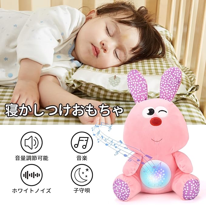 REMOKING 寝かしつけおもちゃ 赤ちゃん おもちゃ ホワイトノイズ オルゴール 家庭用 音楽 投影 うさぎ ぬいぐるみ 知育玩具 新生児 おもちゃ 1歳 出産祝い おもちゃ 女の子 男の子 子供玩具 誕生日プレゼント 贈り物1