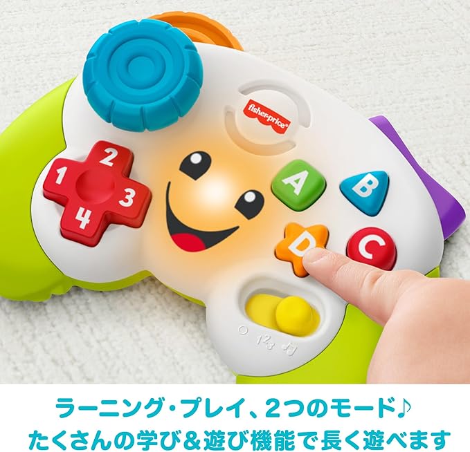 【内容】お子さま専用ゲームコントローラー。2つのゲームモードでたくさんの手遊び。ジョイスティックやボタンを操作して、楽しくお勉強。おでかけにも!①ラーニングモード ボタン、十字キー、スティックを押すと、数、文字、色、形をおしゃべりして教えてくれます!ゆかいなメロディも流れます。②プレイモード 指遊びをするたびにいろいろなメロディが流れて、おしゃべりやゆかいなサウンドが楽しめます!