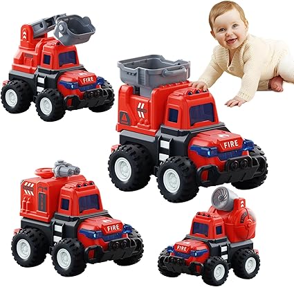 【4種類の消防車】多くの子供たちにとって、消防士になることは夢です!消防車のおもちゃは、消防の安全や消防士の役割について楽しく学べる教育的なツールです。この緊急車両セットには、4種類の消防車が含まれており、子供たちは消防シーンを再現しながら、問題解決のスキルを磨き、手と目の協調や細かい運動能力を向上させることができます。