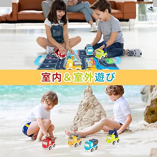 【建設車両4台セット】この建設車両おもちゃセットには、ショベルカー、ダンプトラック、クレーン台、タンク車4種類のリアルに再現された建設車両が付いてきます。お友達と一緒に、または一人でいろいろな役を演じて楽しく遊ぶことができます。6歳以上の子供に適用しています。