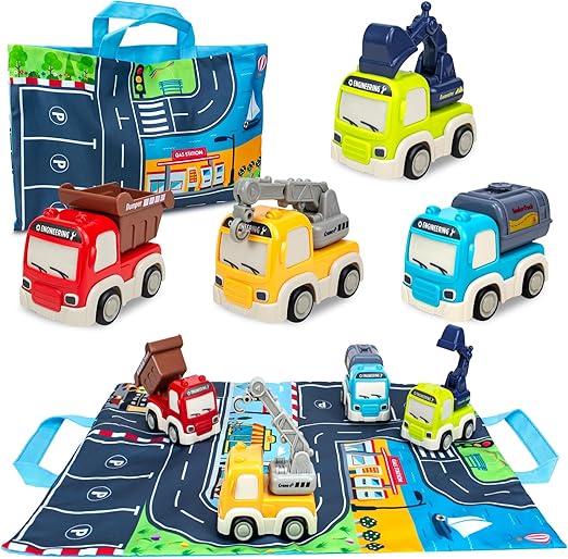 建設車両 おもちゃ 車 ショベルカー ミニカー おもちゃ 働く車おもちゃ 作業車両 4台 工事現場 おもちゃ プレイマット 子供の日 誕生日 クリスマス プレゼント (建設車両-大4P)1