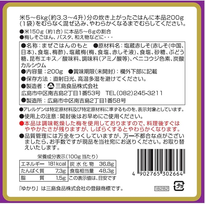 三島食品 ゆかり 梅入り 200g1