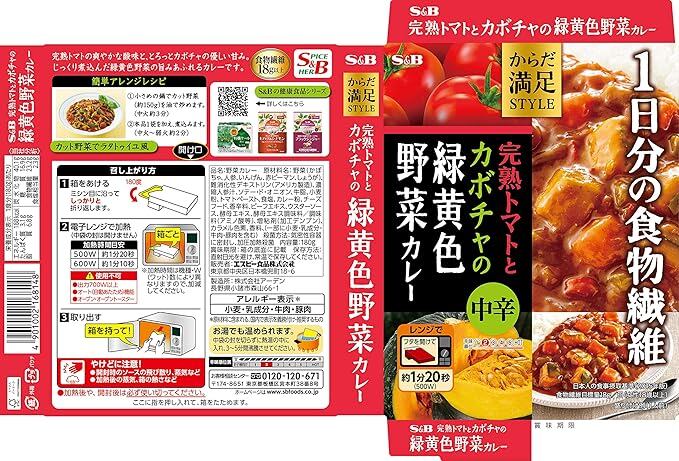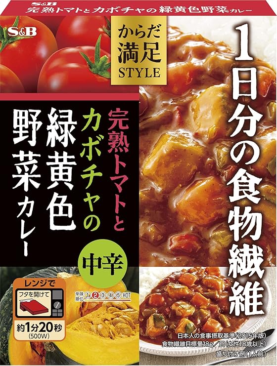 からだ満足スタイル エスビー食品 からだ満足STYLE 完熟トマトとカボチャの緑黄色野菜カレー 中辛 180G ×6箱1