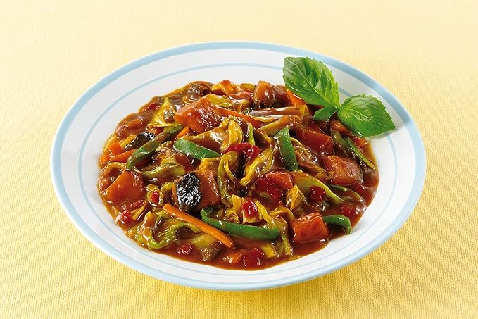 原材料:野菜(かぼちゃ、人参、いんげん、赤ピーマン、しょうが)、難消化性デキストリン(アメリカ製造)、濃縮人参汁、ソテー・ド・オニオン、牛脂、小麦粉、トマトペースト、食塩、カレー粉、チーズフード、香辛料、ビーフエキス、ウスターソース、酵母エキス、酵母エキス調味料/調味料(アミノ酸等)、増粘剤(加工デンプン)、カラメル色素、香料、(一部に小麦・乳成分・牛肉・豚肉を含む)