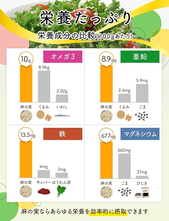 農薬・化学肥料、遺伝子組み換え原料、食品添加物を一切不使用。有機麻の実100%!