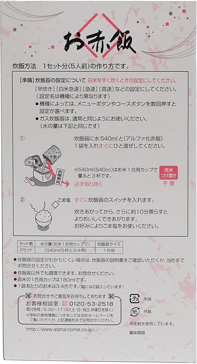 ・内容量1,012g(アルファ化赤飯 500g×2、ごま塩(3g×2)×2)