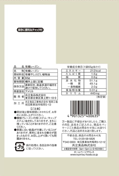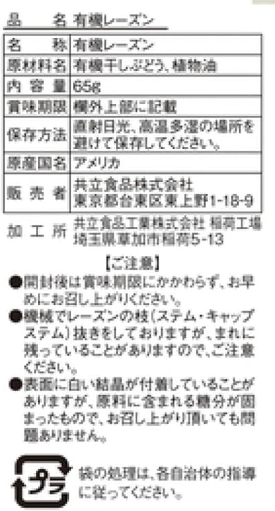 共立食品 有機レーズン 65g×10袋1