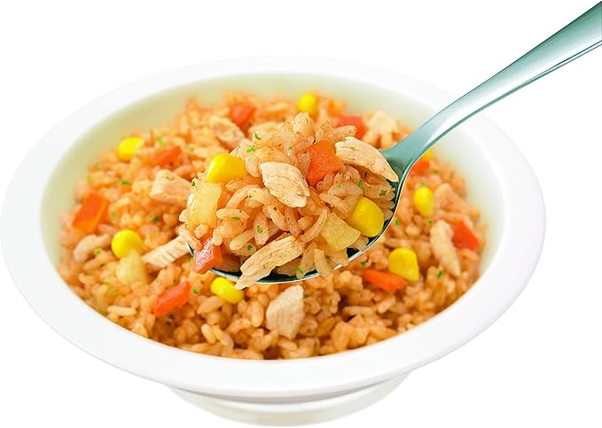 原材料:うるち米(国産)、具(鶏肉・コーン・人参・玉ねぎ)、食塩、ポークパウダー、 粉末醤油、砂糖、トマトパウダー、 チキンエキスパウダー、野菜エキスパウダー、香辛料、パセリ、植物性油脂、 酵母エキスパウダー、調味料(アミノ酸等)、 甘味料(カンゾウ)、微粒酸化ケイ素、トレハロース、香料、パプリカ色素、 酸化防止剤(ビタミンE)、酸味料、 (原材料の一部に小麦を含む)
