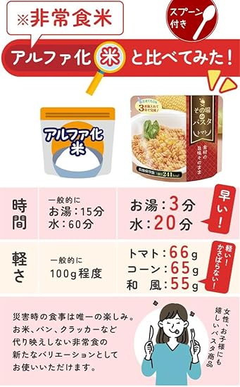 【 非常食 パスタ 5年保存 】 その場deパスタ15食 お湯で3分 保存食 防災食 備蓄 災害 常温 食料 長期保存 登山 アウトドアも1
