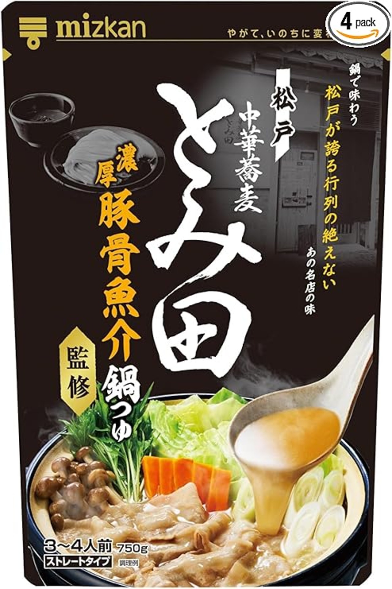 ミツカン 中華蕎麦とみ田監修 濃厚豚骨魚介 鍋つゆ (名店監修) 鍋の素 750g×4袋1