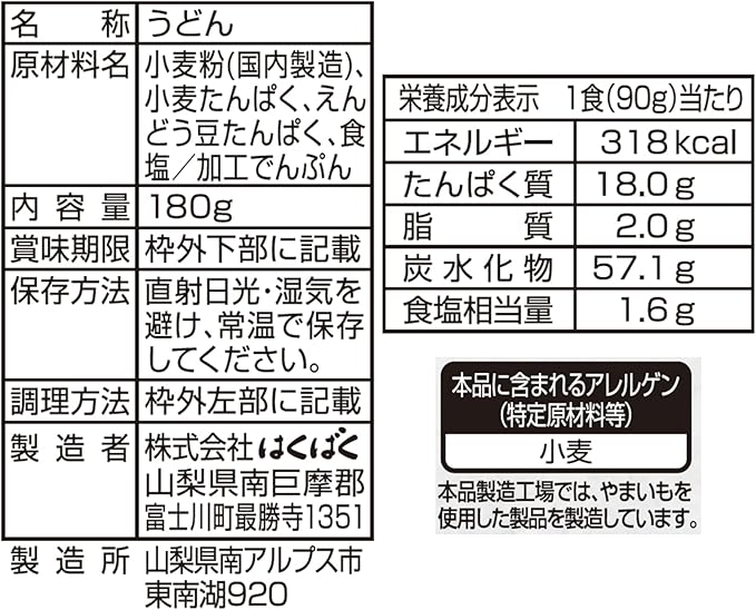 原材料:小麦粉(国内製造)、小麦たんぱく、えんどう豆たんぱく、食塩/加工でんぷん