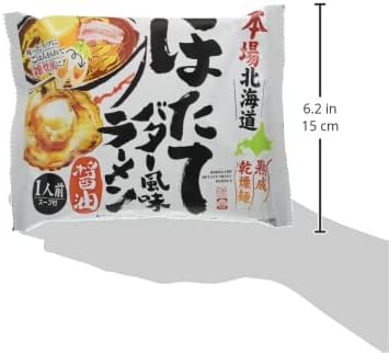 原材料:めん(小麦粉(国内製造)、卵白粉、食塩、小麦たん白)、しょうゆ、ほたてエキス、動物油脂、砂糖混合異性化液糖、食塩、植物油脂、たん白加水分解物、肉エキス、ショートニング、昆布エキス、香辛料、オニオンエキス/調味料(アミノ酸等)、酒精、かんすい、香料、着色料(カラメル、クチナシ、カロチン)、増粘剤(キサンタンガム)、香辛料抽出物、(一部に卵・小麦・大豆・豚肉を含む)