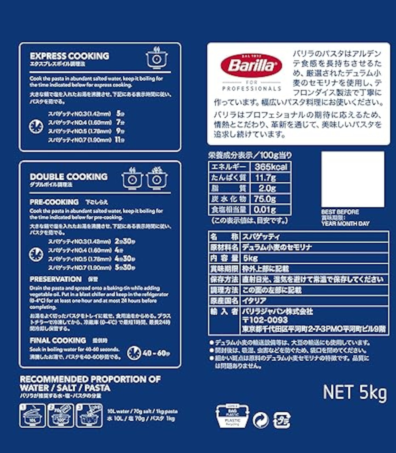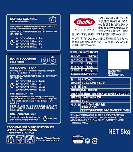Barilla(バリラ) BARILLA パスタ スパゲッティ No.5 (1.78mm) 5kg [正規輸入品] イタリア産1