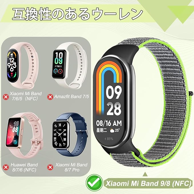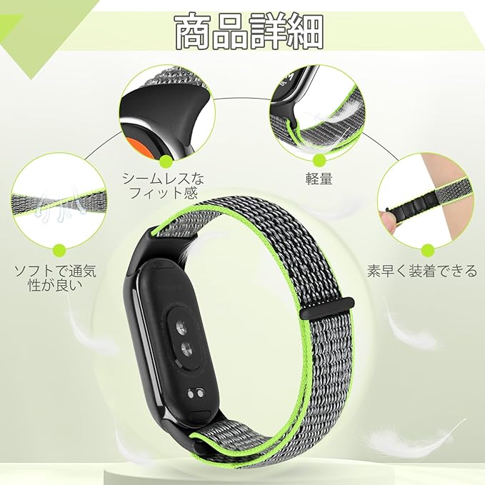 [BTTNG] ナイロン リストバンド互換性の Xiaomi Smart band 9/Xiaomi Mi Smart Band 8 女性男性用、 1 個通気性ナイロン腕章スポーツ ソロ ループ交換バンド Xiaomi Band 9/Xiaomi Band 8 の1