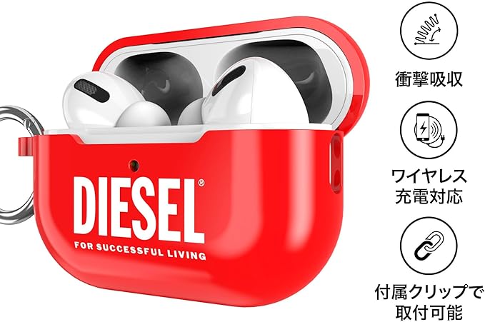 DIESEL AirPods Pro2 ケース/AirPods Pro ケース TPU おしゃれ カバー ブランドロゴ 保護 (ディーゼル AirPodsPro 第1世代 / 第2世代 ケース, 赤 レッド)1