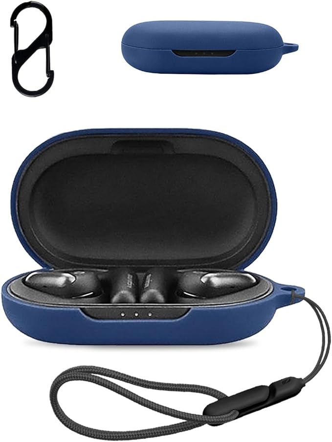 For Anker Soundcore AeroFit 用 ケース カバー 【RIGFUJUN】保護カバー カラビナ付き 紛失防止 イヤーホン用ケース キズ防止 耐衝撃 全面保護 落下防止 装着充電可能 防塵 軽量(ブルー)1