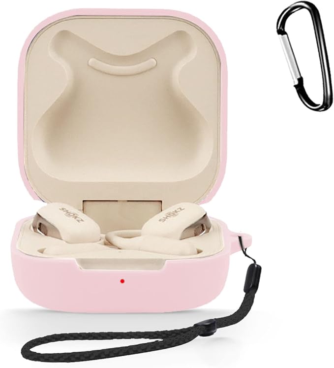 Shokz OpenFit 用 ケース 全面保護カバー シリコンケース 【HUKWIMO】 カラビナ付き 耐衝撃 防水 防塵 装着充電可能 全面保護 キズ防止 Shokz OpenFit 対応インイヤーヘッドホン用ヘッドホンケース [ピンク 粉]1