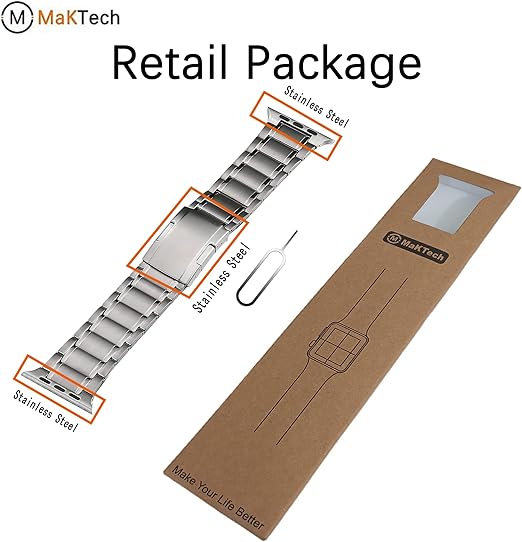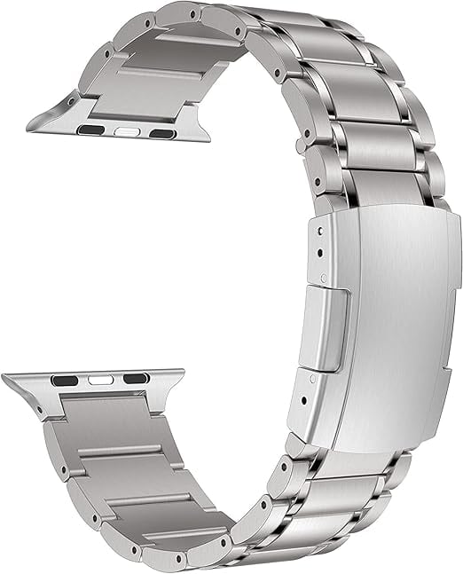 MaKTech チタンバンド、べっ甲バックル付き 5 ピース リンク メタル ブレスレット、Apple Watch 10/9/Ultra 2/SE/8/7[2024]に対応 (46mm/45mm/44/49mm,銀)1
