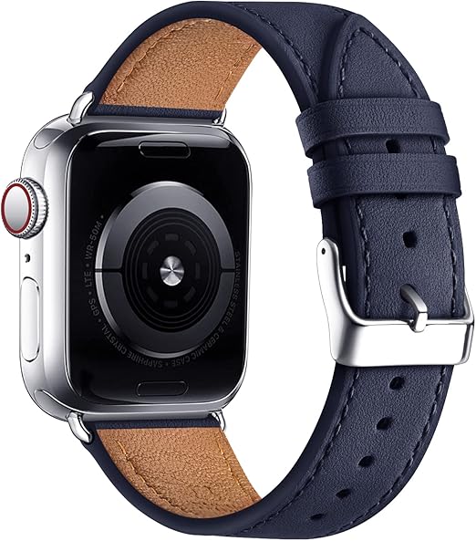 アップルウォッチバンド コンパチブル Apple Watchバンド Apple Watch用 交換ベルト 腕時計用バンド 本革 革バンド サイズ42mm 44mm 45mm 49mm iWatch Series 8/7/6/5/4/3/2/1/SE/Ultraに対応(ブルー・シルバー)1