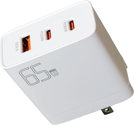 【2024年新型】65W 充電器 急速 PD/QC/PPS 対応 USB Type-C AC/DC電源 アダプター GaN 超薄型 小型 軽量 コンパクト 携帯式 トラベル チャージャー 折りたたみ式 プラグ 3ポート 同時高速【iPhone/iPad/MacBook/ノートPC/タブレット/Android 携帯電話 スマホ/Apple Watch/スマートウォッチ 充電器 互換性対応】1