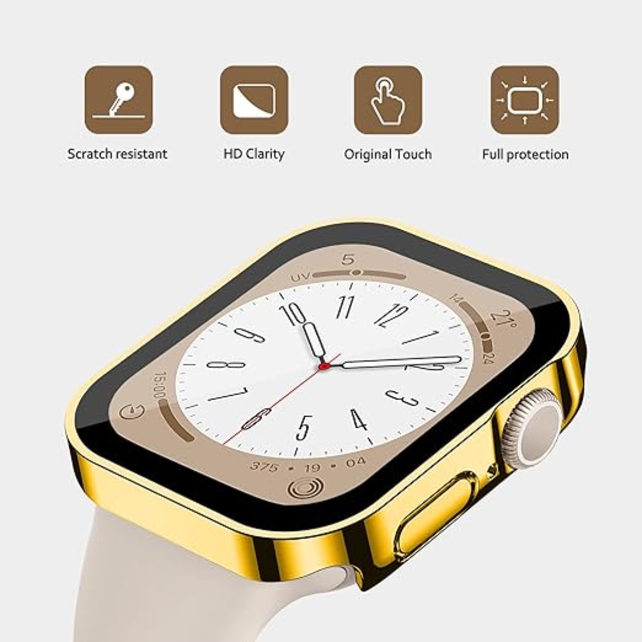 4パックウォッチ保護ケースコンパチブルApple Watchシリーズ8 7 41/45mm全面保護強化ガラススクリーンプロテクター、耐衝撃性 指紋防止 極薄軽量 一体感設計 高透過率 取扱簡単IWATCHシリーズ6 5 4 40/44mmのハードPC保護ケース、set L1