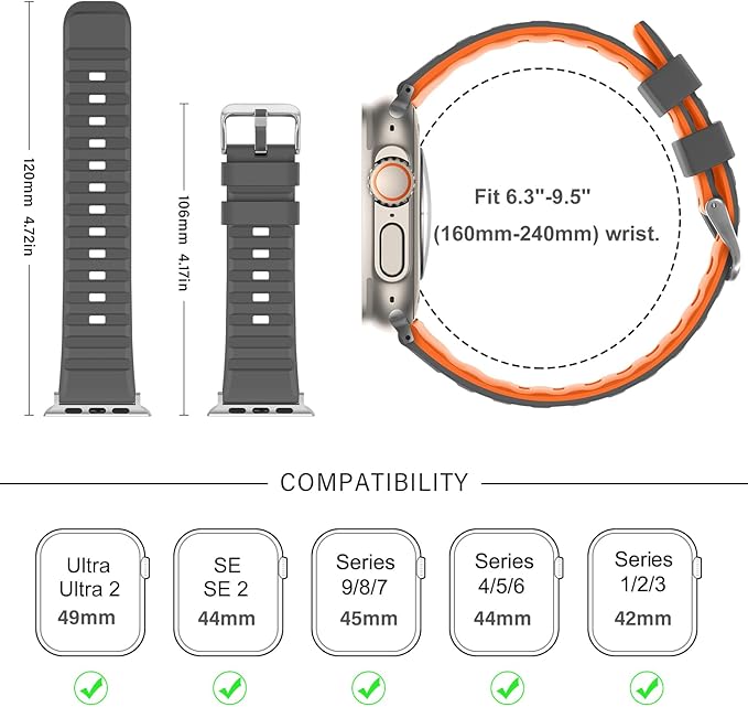 [Suphart] コンパチブル Apple Watch バンド49mm 46mm 45mm 44mm 42mm 柔らかいシリコン製通気性防水スポーツバンド に対応 Apple Watch Ultra 2 Ultra シリーズ 10 9 8 7 6 5 4 3 2 1 SE (グレー/オレンジ)1
