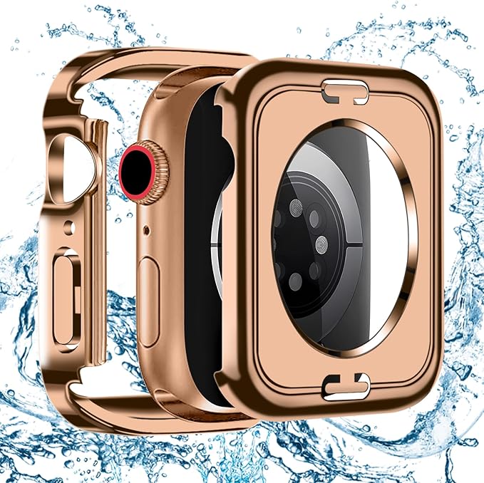 【2024改良ケース】TEMEDO for アップルウォッチ カバー 44mm 対応 Apple Watch se 第二世代/se/6/5/4 カバー 一体型 3D直角エッジデザイン 防水ケース アップルウォッチse 第二世代/se/6/5/4 カバー 360ど度 IP68完全防水 Apple Watch カバー ガラスフィルム メッキ加工 全面保護 二重構造(44mm,防水のローズゴールド)1