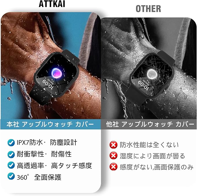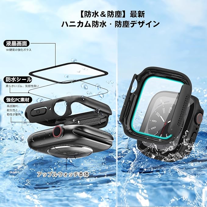 ?ATTKAI for アップルウォッチ カバー Series 9/8/7/6/5/4/SE2/SE for Apple Watch カバー 防水 一体型 PC素材 硬度9H強化ガラス 高透過率 指紋防止 超薄型 耐衝撃 全面保護 for Apple Watch ケース (45mm,ブラック)1