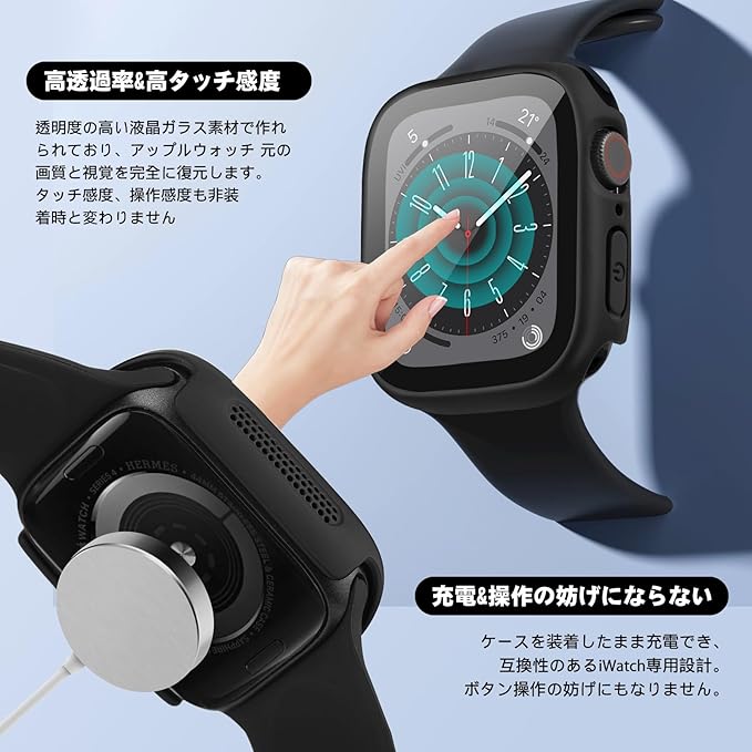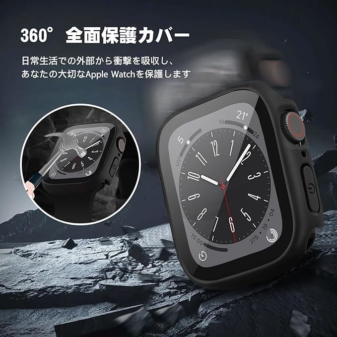 【対応機種&装着簡単】45mm Apple Watch 保護カバー for Apple Watch Series 9/Series 8/Series 7。※ご注意:ご確認の上お買い求めください、ご使用モデルのサイズはアップル ウォッチ本体裏面に刻印がございます、お客様のアップルウォッチにより正しいサイズのケースを選択してください。カバー簡単に取り付け・取り外。取付け道具不要、アップルウォッチのボタンの丸部分の精密穴を通してからウォッチの本体に取り付けます。または逆の手順でケースを取り外れます。