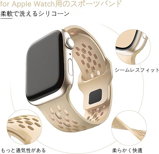 【通気性抜群】 圧縮成形された通気穴で通気性を確保します。ソフトなシリコン素材を使用しており、軽くて柔らかくて快適に肌になじみます。コンパチブル アップルウォッチ 10 バンドは、フィットネ