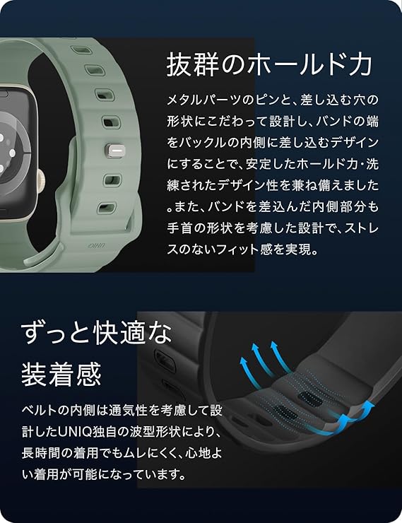 UNIQ Apple Watch バンド 42mm 41mm 40mm : Series 10/9/8/7/6/SE/5/4対応 ラバーバンド スポーツバンド アップルウォッチバンド STRIDE1