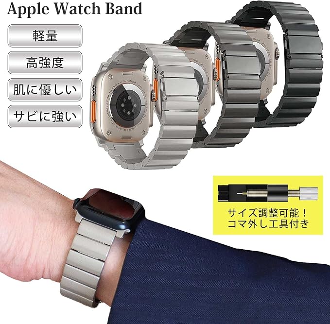 [Happy mono] Apple Watch用 バンド アップルウォッチ Apple Watch ultra 交換ベルト チタンバンド 互換品 検査機関確認済み Series Ultra2/Ultra/9/8/7/6/SE2/SE/5/4/3 交換ベルト 長さ調整器具付き1