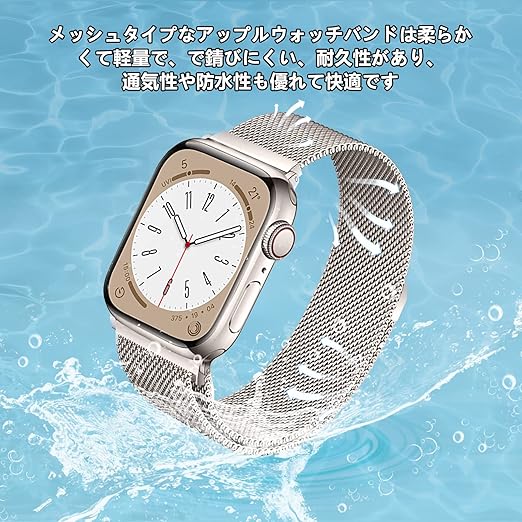 FEEKI コンパチブル Apple Watch バンド 49mm 46mm 45mm 44mm 42mm 41mm 40mm 38mm コンパチブル アップルウォッチバンド ステンレス留め金製 男女兼用 マグネットクラスプ コンパチブル Apple Watch ベルト 長さ調節 通気 メッシュ ベルト Apple Watch Series 10/9/Ultra/SE/8/7/6/5/4/3/2/1に対応 (49/46/45/44/42mm(Series 3 2 1), スターライト)1