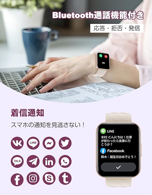 【Bluetooth通話&Lineメッセージ通知&音楽再生】RUIMEN D1スマートウゥッチは内蔵スピーカーと高性能マイクを搭載、スマートフォンと接続すれば、スマートウォッチから直接電話をかけたり、応答したり、スピーカー機能をオンにしたりできる、通話履歴の保存や連絡先を確認も可能です。スマートフォンをポケットに入れていても、運転中や料理中など、すぐにスマートフォンを取り出せない状況でも、重要な通話を逃すことはないです。スマホAPPの通知設定をONにすると、LINE、Twitter、Facebo