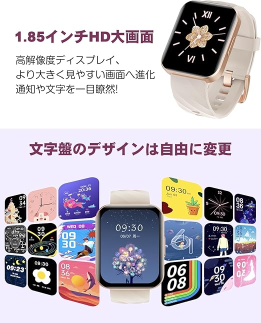 RUIMEN スマートウォッチ iPhone アンドロイド 対応 通話機能付き Smart Watch 1.85インチ大画面 レディース メンズ 腕時計 100+種類運動モード ゲーム 女性生理周期管理 睡眠モニター Gmail/着信&メッセージ通知 スマホ探す 天気予報 音楽制御 消費カロリー 長持ちバッテリー ストップウォッチ 目覚まし時計 技適認証済み1